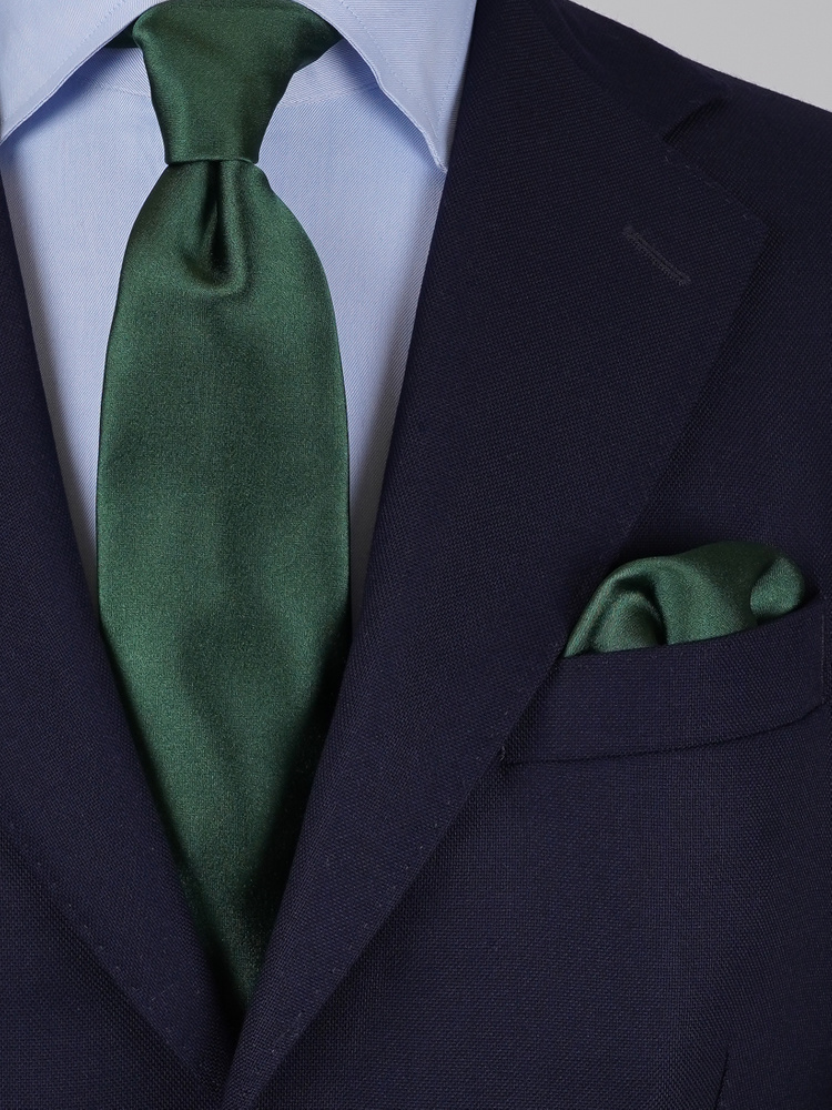 Mörkgrön satinslips & näsduk