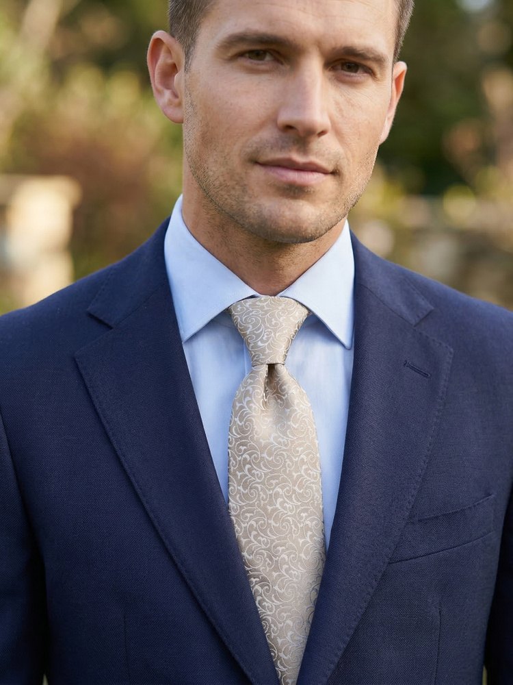 Guldbeige sidenfluga & näsduk Lusso