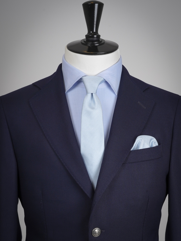 Detta ljusblå sidenset består av en smal slips och en matchande näsduk, båda med en grenadinväv som ger tyget en vacker struktur och fyllighet. Setet tillverkas i Como, Italien, av ett anrikt väveri med decenniers erfarenhet och sys noggrant för hand av italienska hantverkare. Resultatet är en kombination av tidlös hantverksskicklighet och modern elegans – perfekt för både professionella sammanhang och vardagens stilfulla uttryck.