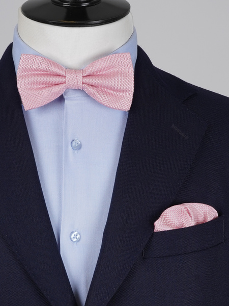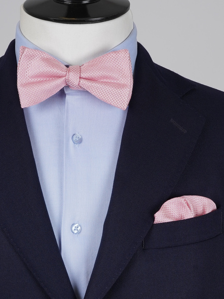 Detta ljusrosa set i siden består av en smal slips och en matchande näsduk, båda med en exklusiv grenadinväv som ger subtil struktur och djup. Vävt i Como, Italien, av ett väveri med nästan ett sekel av hantverksskicklighet och handsytt av italienska skräddare. Setet tillför en raffinerad karaktär till både affärs- och smart-casual-stilen.