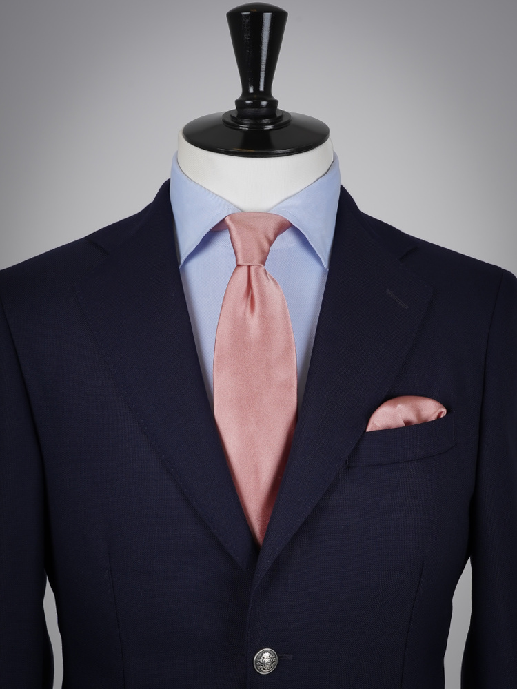 Detta eleganta bröllopsset kombinerar en gammalrosa slips i sidensatin med en matchande näsduk – en sofistikerad nyans som är mycket uppskattad vid bröllop. Båda delarna är handsydda i Como, Italien, av exklusivt siden från ett familjeägt väveri med nästan hundra års textiltradition. Det tjocka, högkvalitativa sidnet har en mjuk och glansig satinväv som ger en lyxig känsla, medan slipsen har en mellanläggning av ullblandning som ger en vacker fall och perfekta knutar.