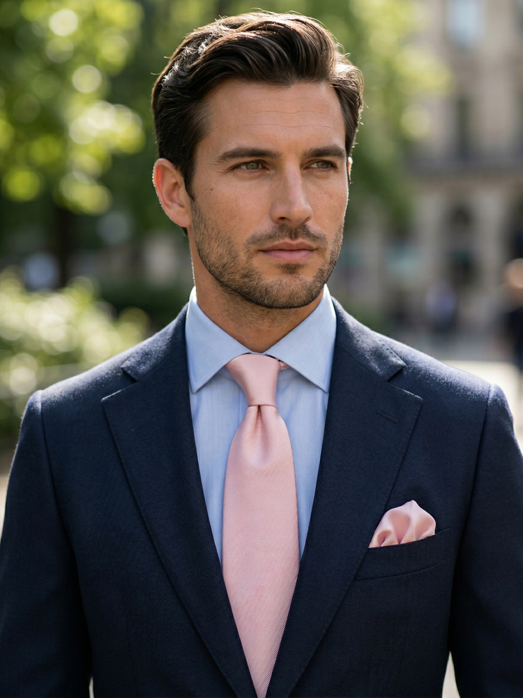 Ljusrosa slips & näsduk